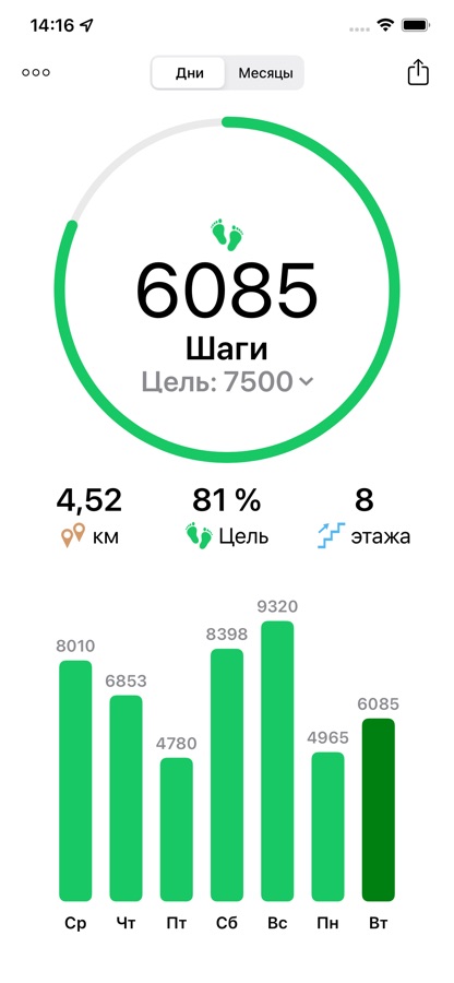 Apple Health: Goals может быть интегрирован с Apple Health Приложение, чтобы считывать ваш пульс и информацию о шагах, или писать тренировки.