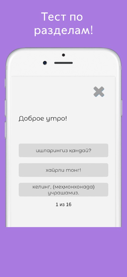 Русско-узбекский разговорник подойдет как туристам, так и людям, желающим освоить узбекский язык. Работает без интернета и позволяет пройти тест для закрепления знаний.