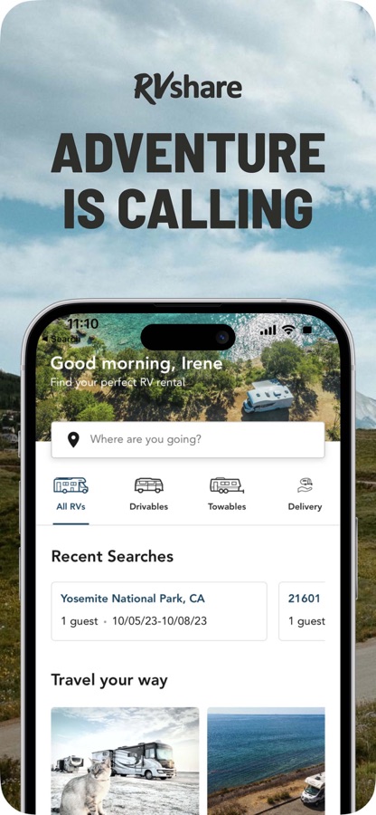 RVing gives you the freedom to vacation the way you want to. Whether it’s driving the open road to a hike on a bucket list trail or having the RV delivered and set up to camp at a national park campground, you’ll find that an RV rental is the best way to experience it. Renters can use the RVshare app to: