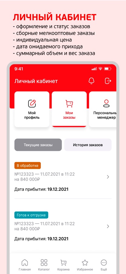 ∙ отслеживать статусы заказов: от подтверждения до даты отгрузки