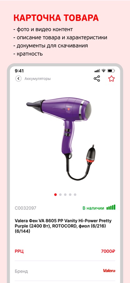 ∙ искать товары по названию, артикулу, через сканер штрихкода или с помощью фильтров