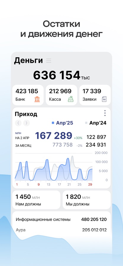 • Анализ движения денег – поступления, расходы, оплата поставщикам, зарплата сотрудникам.