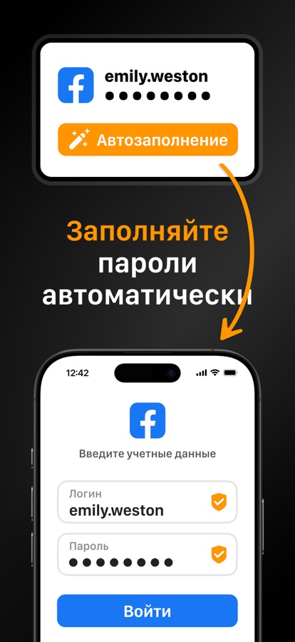 • Автозаполнение паролей – мгновенно вводите учётные данные в приложениях и браузерах