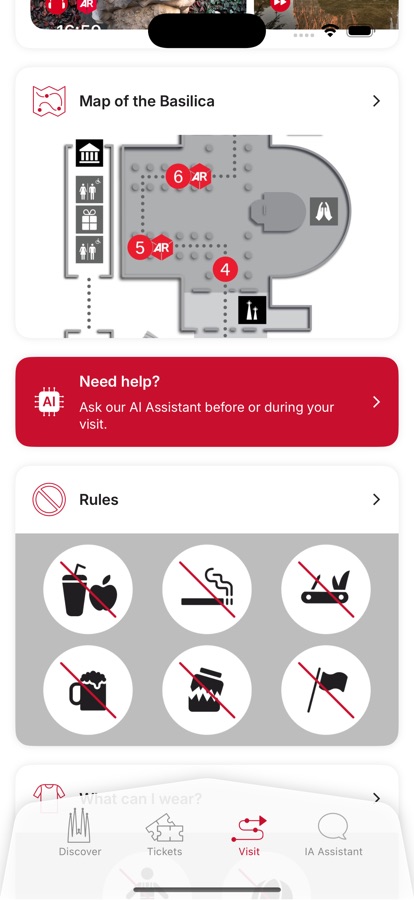 Our app includes a map of the Basilica for your visit, photos, the audioguide in 19 languages and access to AR, among others… Plus, you can use our AI assistant any time.