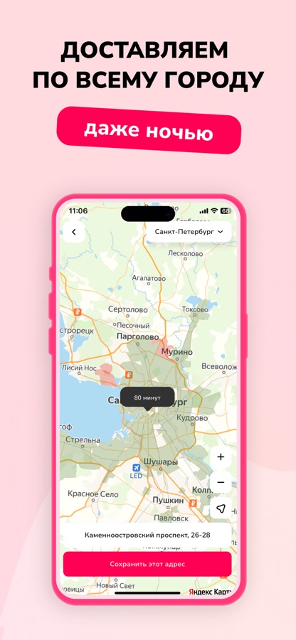 Круглосуточно принимаем заказы на готовую еду в разных городах: Санкт-Петербург, Москва, Мурманск и Апатиты.