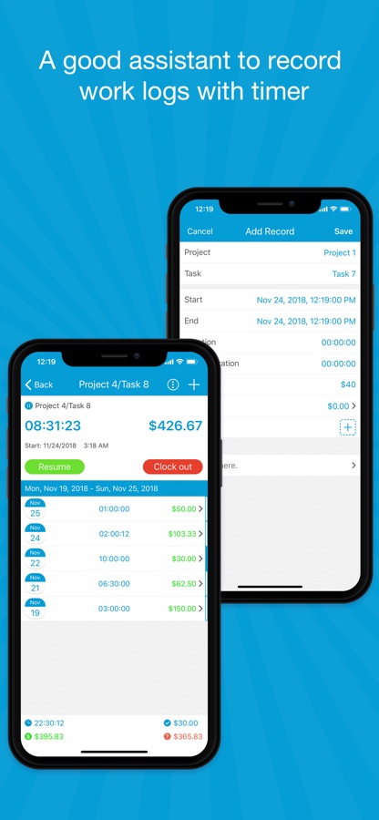 Просто нажмите таймер запуска, Калькулятор зарплаты будет записывать ваше рабочее время и заработную плату. Он сохранит записи для вас, чтобы просмотреть, поделиться даже отправлять платежные ведомости клиентам.