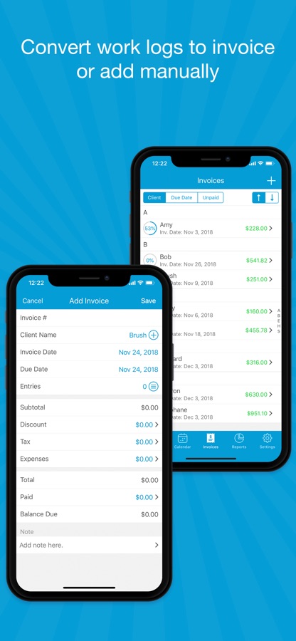 Вы можете просмотреть бревна по списку или календарю, экспортировать бревна или распечатать их непосредственно из приложения, а также пометить бревна с платным статусом.