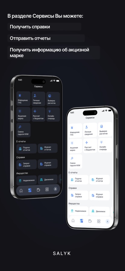 Salyk.kg от Налоговой службы при Министерстве финансов Кыргызской Республики предоставляет удобный и мощный инструмент для управления вашими налоговыми обязательствами прямо с вашего мобильного устройства.