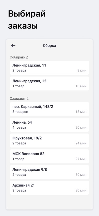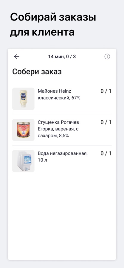 В приложение будут приходить заказы. Отмечай собранные товары, указывай боксы, в которые ты сложил их.