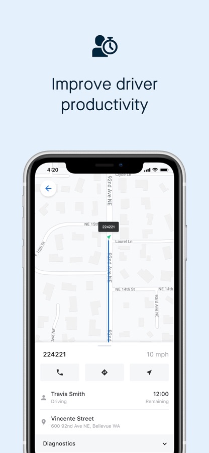 — Keep your team productive. See Hours of Service at a glance and easily navigate to any driver.