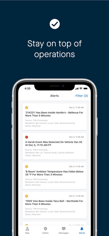 — Stay on top of operations. Get real-time alerts and investigate incidents right in the app.