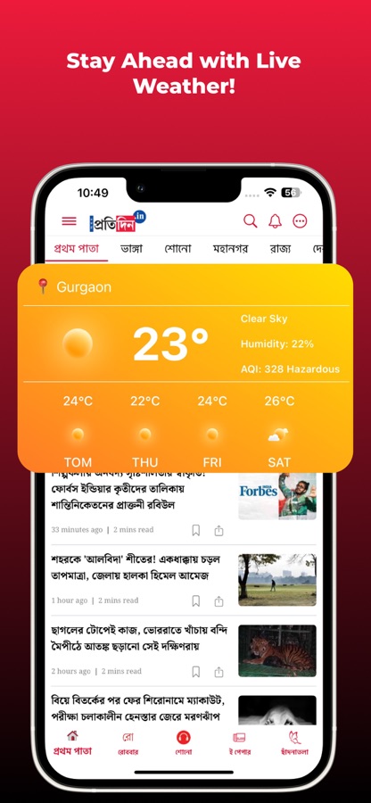 Sangbad Pratidin Bangla newspaper app is an extension of our flagship website https://sangbadpratidin.in and it allows you to enjoy the same experience that you get on this website while you are on the move. This Bangla news app keeps you updated with the latest happenings in all of Bengal including Kolkata.