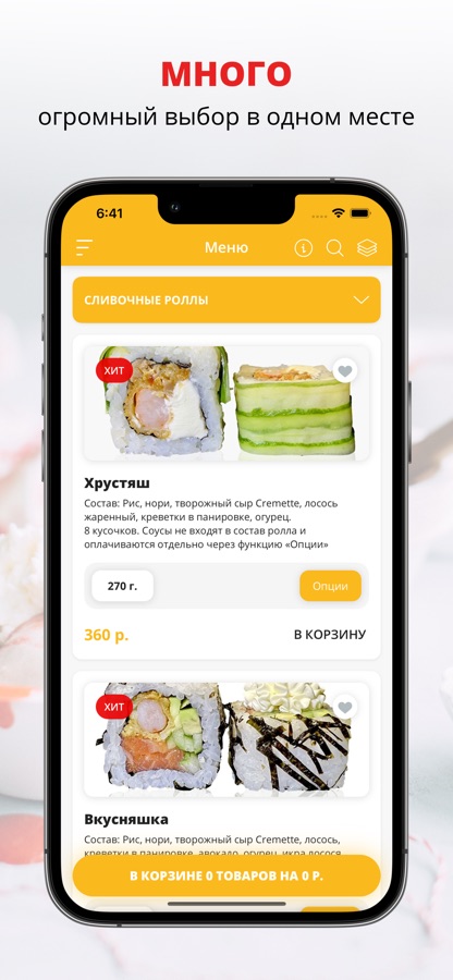 Всегда в меню: свежие роллы, суши, вкусная пицца и другая готовая еда.