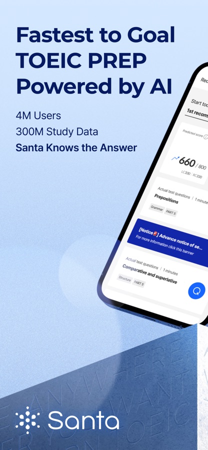 Скачайте приложение Santa — AI TOEIC/TOEFL для iOS бесплатно - последняя версия (6.10.5) уже доступна для установки на ваш iPhone или iPad.
