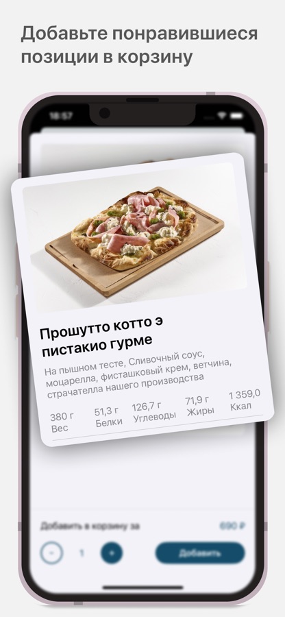 Как сделать заказ в приложении “Sapore Italiano”: выберите понравившиеся позиции из меню, добавьте их в корзину и перейдите на экран оформления заказа (по нажатию на иконку корзины).