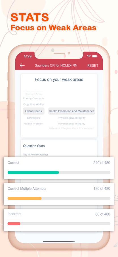 * Stats (View details on topics mastered so you can focus on weak areas)