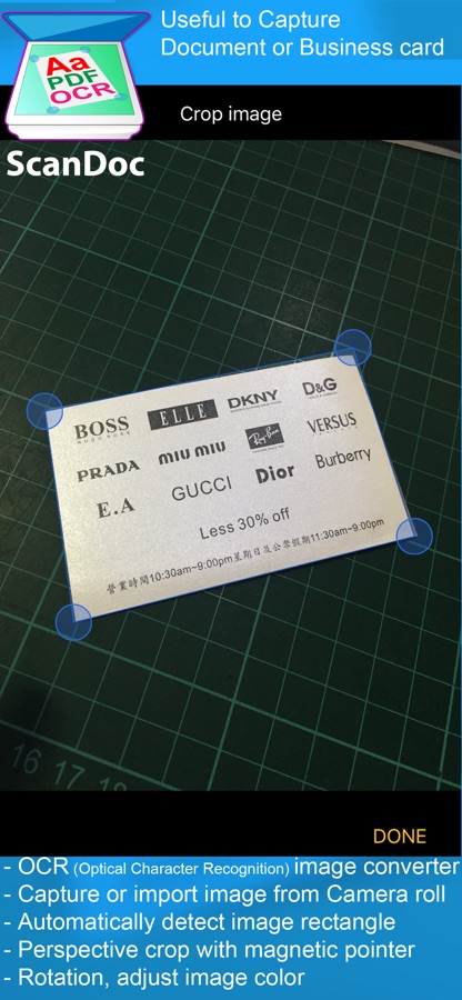 ScanDoc is useful to capture document or business card image.