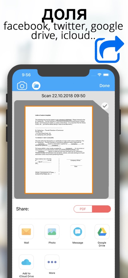 Защита документов — добавление водяных знаков, управление доступом, загрузка в iCloud или Google Диск.