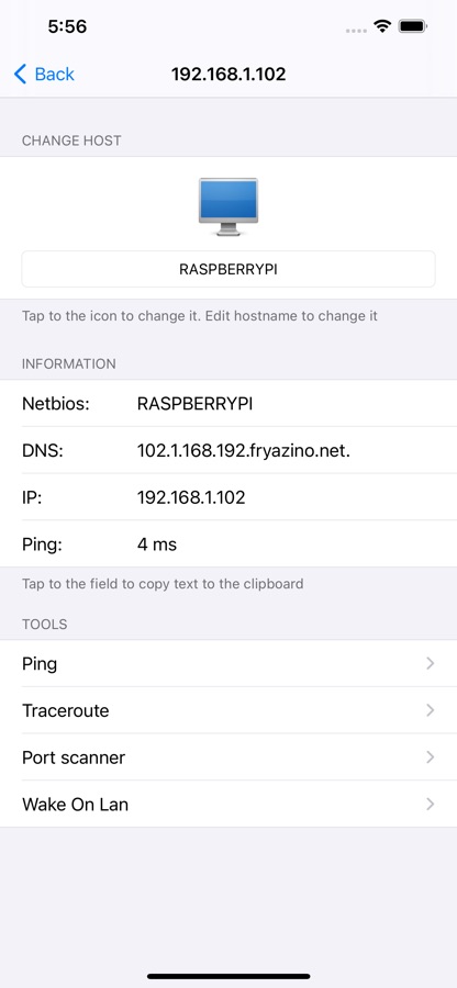 7) В состав программы входят сетевые утилиты, знакомые каждому админу — ping, tracerout, port scanner. Premium доступ позволяет обращаться к ним прямо с экрана информации об устройстве. В бесплатной версии все утилиты доступны для вызова из меню приложения.