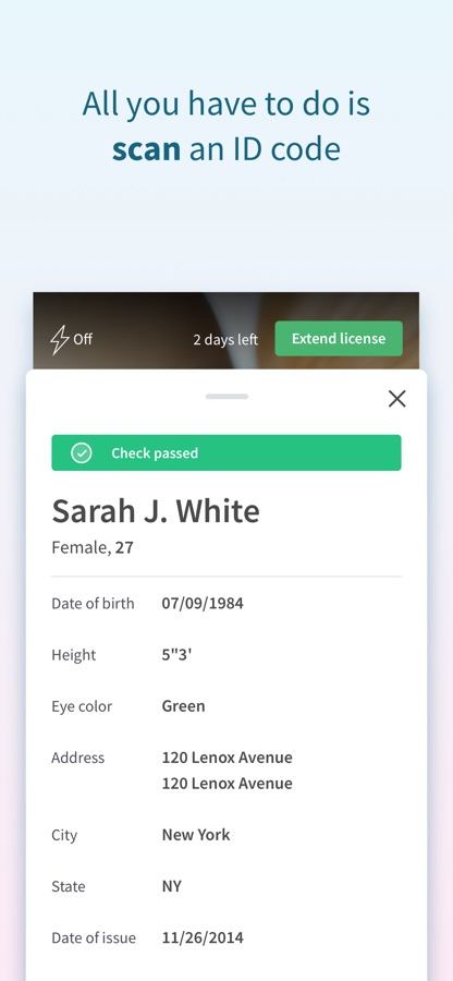 The app offers the so-called bouncer mode – the ability to set the age limit and filter people accordingly. If the person is above the age limit, the scanned data is shown on the green background. If not, the background is red. It can also detect expired licenses.