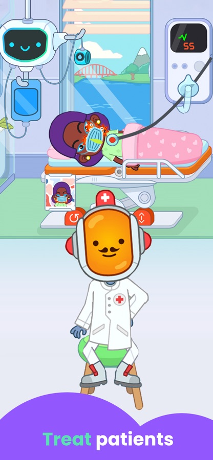Welcome to the Flu Clinic, a fun and educational hospital game for kids! Become a doctor, patient, or scientist and explore every floor — from the medical center to the science lab. Treat virus infections, transport patients via helicopter ambulance, and experiment with bacteria in a futuristic lab. Kids build executive function, problem-solving, and empathy as they manage care routines and learn how to prevent infections using masks, vaccines, and hand sanitizers. With a kid-friendly interface, this safe learning hospital game for kids turns hygiene and health education into an exciting adventure!