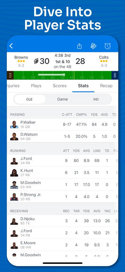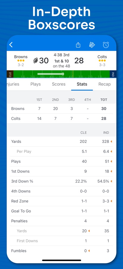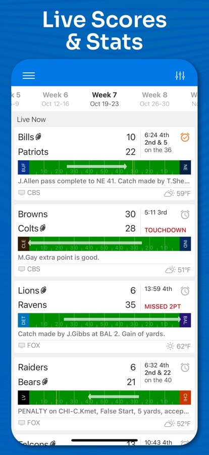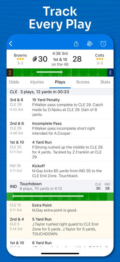 — Instant NFL score updates with customizable alerts for touchdowns, red zone drives, close games and much more.