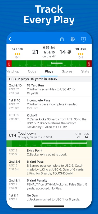 • Lightning-Fast Updates – Every play, every drive, updated instantly.