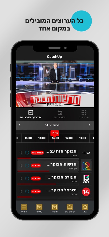 NEWS: Watch all the News broadcasts LIVE, or at a time that suits you using Catch-Up. All current affairs, talk shows and updates on what is happening in Israel