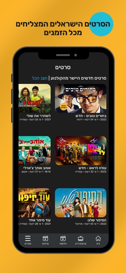 VOD: The largest Israeli content library outside of Israel with thousands of hours. Israeli movies, Israeli series, kids shows, nostalgic content, comedies, dramas and the hottest prime time and reality shows