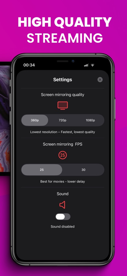 • Mirror your entire phone screen to TV in HD quality and with sound!