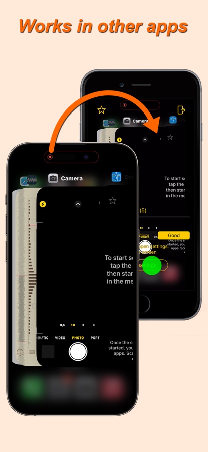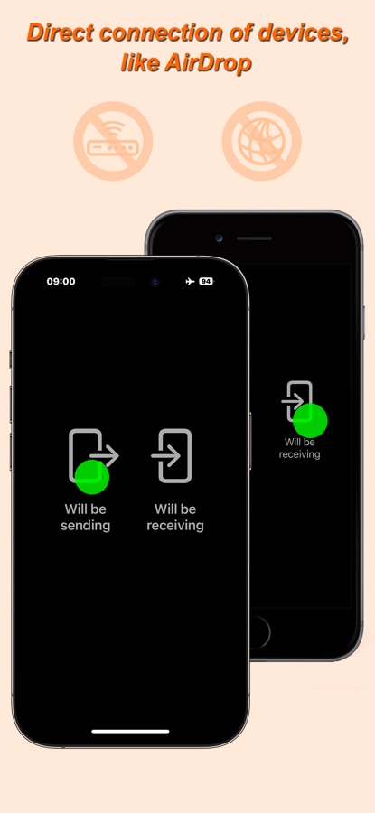 Приложение передаёт изображение экрана с iPhone/iPad на другой iPhone/iPad. Другими словами, повтор экрана для двух iPhone (транслировать изображение экрана можно одновременно на несколько iPhones/iPads). Два устройства используют одноранговый Wi-Fi, что позволяет устройствам общаться напрямую, даже если они не находятся в одной инфраструктурной сети Wi-Fi. Эта технология используется AirPlay®, AirDrop® и так далее. Другими словами, выход в Интернет или Wi-Fi роутер НЕ нужны. Максимальная дистанция на которой может сохраняться связь между двумя устройствами около 6 метров.