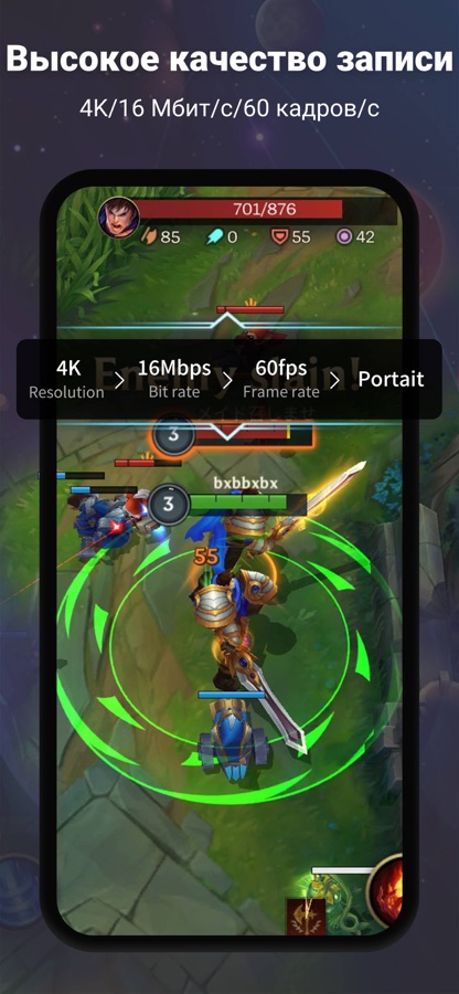 Поддержка нескольких соотношений сторон и экспорта в 4K HD. Мгновенно делитесь игровым процессом, видео и моментами в социальных сетях.