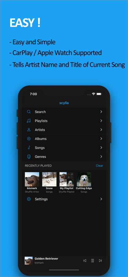 scylla is a new Hi-Res audio player app featuring “Easy”, “A Lot”, and “Comfortable”.