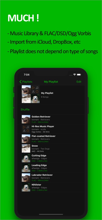 Additional to your music library, you can import your songs from iCloud Drive, Dropbox, …
