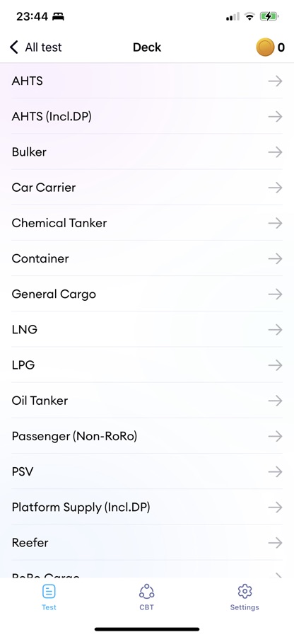 This application contains all questions and answers for Sea Test ver. 6.0.10 divided by departments.