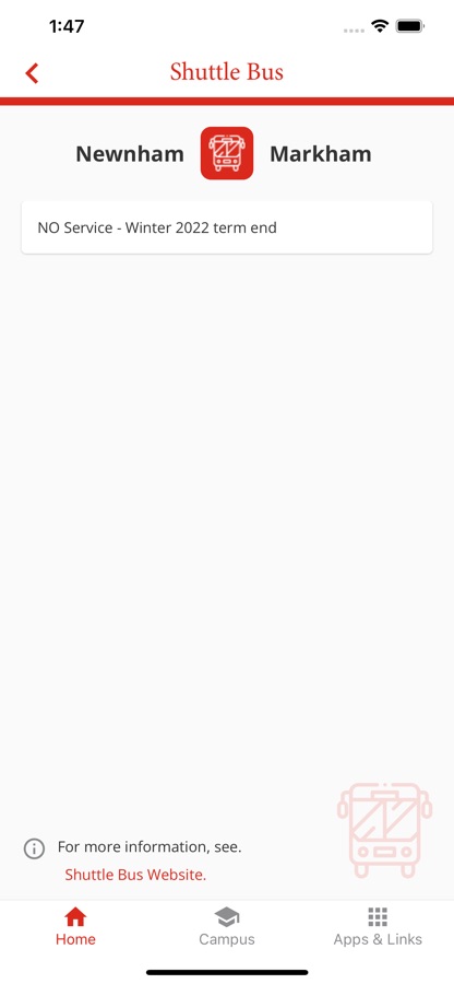 • Shuttle Bus – up-to-date bus schedule for all campuses