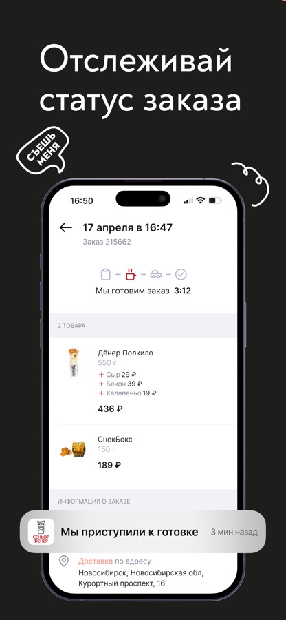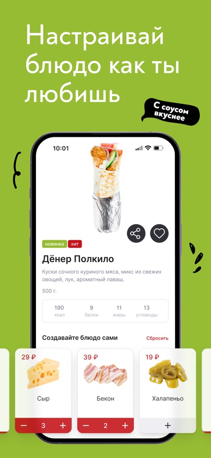 Мы не жалеем мясо и соуса, даем вам лучшее качество по невероятно низкой цене, а еще стараемся улучшить ваш опыт заказа — вы всегда можете оплатить шаурму прямо на сайте и забрать ее уже готовую в ближайшей к вам точке и отследить статус заказа в личном кабинете — МЫ ОБЯЗАТЕЛЬНО СЭКОНОМИМ ВАМ ВРЕМЯ!