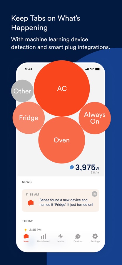See how much energy your home is consuming in real time and how it compares to previous months right from your phone. Understand how your activity impacts your electric bill and get tips on how to save. People who use Sense save, on average, 8% on their electric bill.