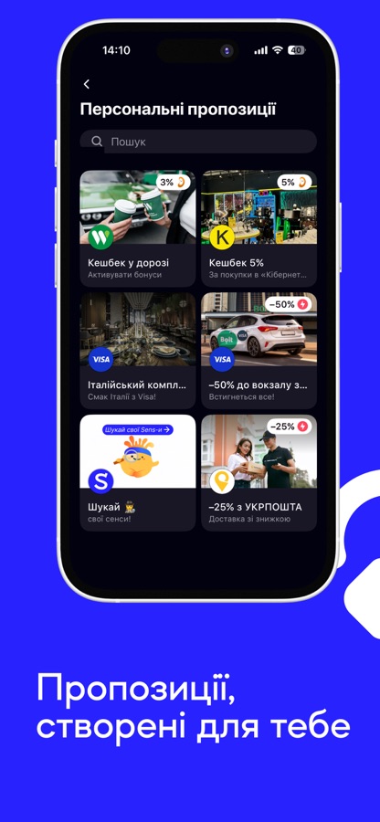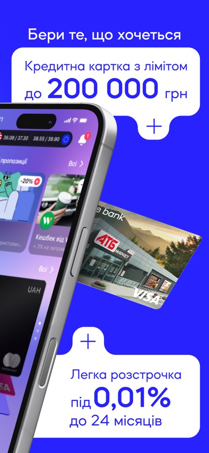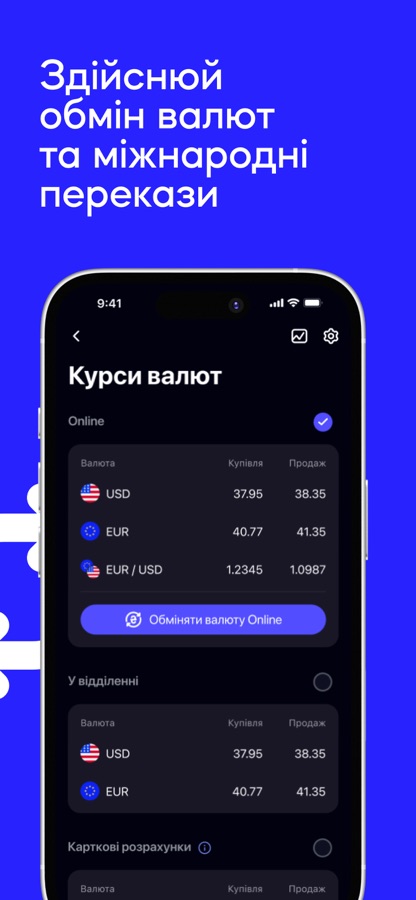 Єдиний застосунок для керування рахунками, картками, платежами, депозитами й валютними операціями — усе, що потрібно для щоденного банкінгу.