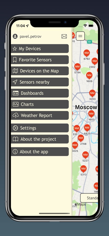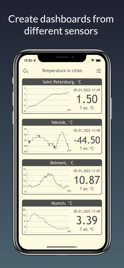 Приложение позволяет наблюдать свои, а также публичные приборы и датчики проекта «Народный мониторинг»: