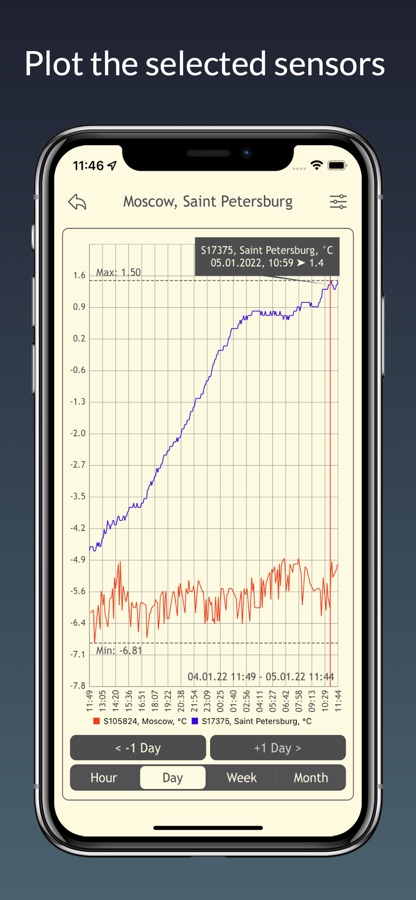 — Строить графики выбранных датчиков за различные периоды;