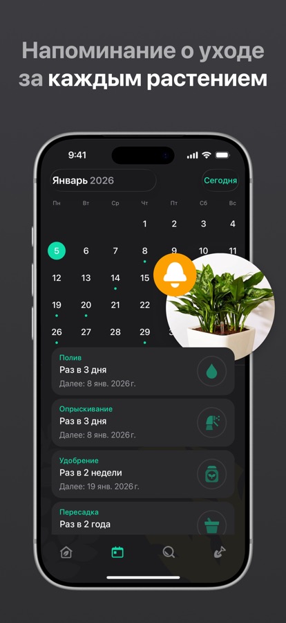 3. Приложение напомнит о поливе, удобрениях и пересадке