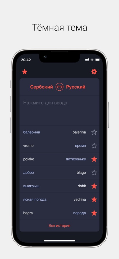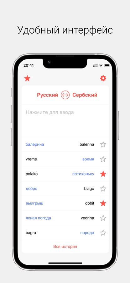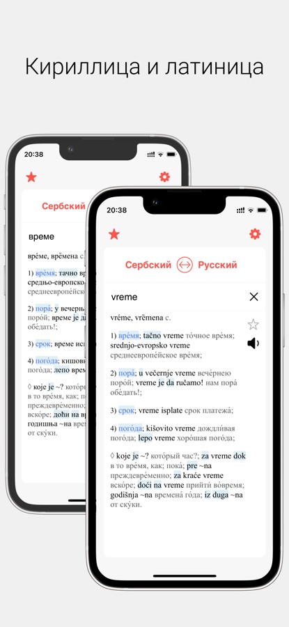 Словарь содержит 45 000+ сербских слов и поддерживает обратный перевод с русского на сербский.