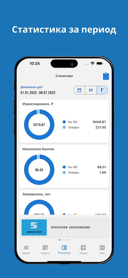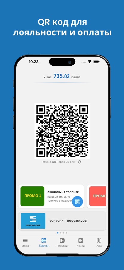 • Вместо карт предъявляйте динамический код на экране смартфона на всех зарегистрированных АЗС с установленной АСУ Servio Pump.