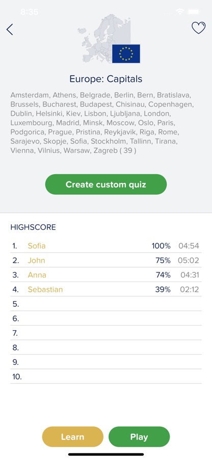 Those who are little rusty on their U.S. state capitals or vague on the current status and existence of those pesky «istans» can browse categories and shore up their knowledge base using the Learn Mode. When ready to test their memory, an interactive map identification task is just a click away.