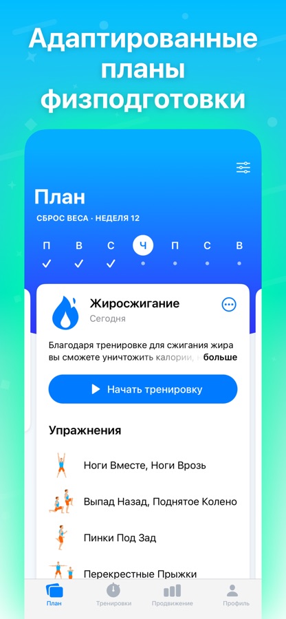 • Достигайте уровни от новичка до атлета, внося разнообразие в свои упражнения