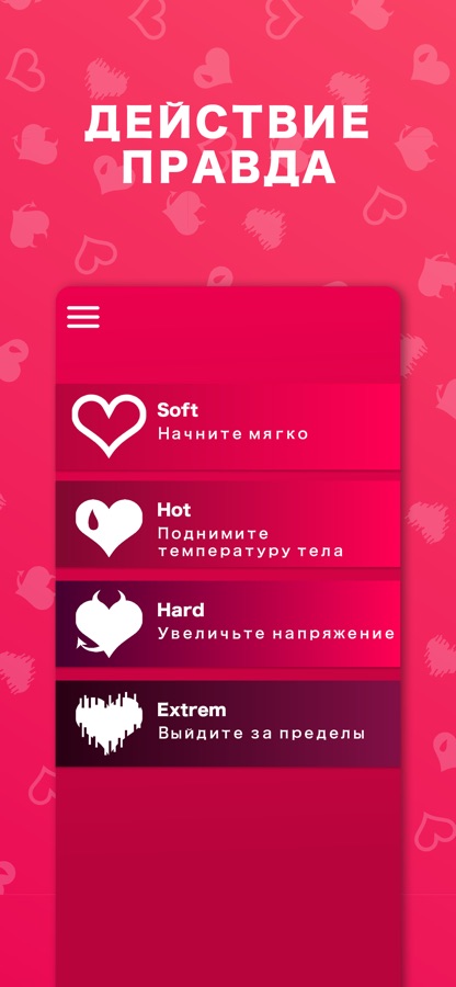 Лучшая из существующих эротическая игра для пар, основанная на принципе «Правда или Действие?». Приготовьтесь к тому, чтобы провести лучший из возможных для вас и вашего партнёра вечеров! Эта игра для пар содержит более 1000 эротических пари и вызовов, разделённых на 4 уровня сложности, от мягкого до экстремального! Выберите между Правдой или Действием.