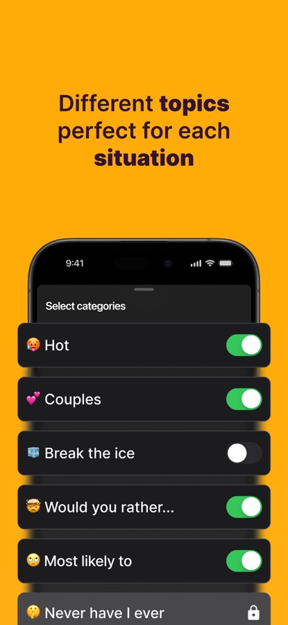 Tailor your experience with topics crafted for various scenarios. From having fun with university colleagues to intimate moments for couples. Explore themes for threesomes, ice-breaking questions, and LGBTQ-friendly content for inclusivity.