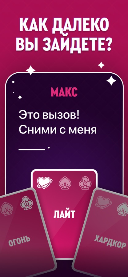 5 полноценных режимов игры в «Правду или Действие»: от лайта до хардкора, плюс режим, специально созданный для пар. Наслаждайтесь любимой забавой родом из детства. Если любите играть с огнём, можете позвать друзей. Только не обожгитесь!