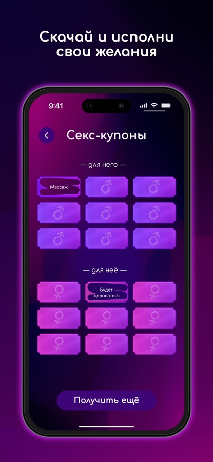 И пусть некоторые задания секс игры заставят вас посмеяться или смутиться, а может быть даже всерьез покраснеть, главное – это то, что время будет потрачено незабываемо и точно не зря. Ведь ваша пара буквально создана для того, чтобы дарить друг-другу яркие эмоции и страсть. Скорее обнимайте друг-друга и открывайте игру. Вас ждут новые развлечения интимного характера. А если вдруг кто-то из вас забудет о том, что нужно радовать себя и партнера, приложение обязательно об этом напомнит. Всего одна установка, и секс тут же становится частью вашего расписания.